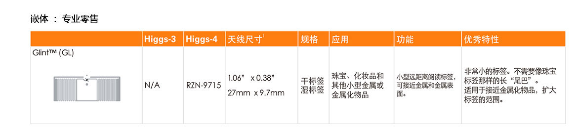 RZN-9715是零售專用標簽,小型的遠距離閱讀標簽,可接近金屬和金屬表面,適用于珠寶、化妝品和其他小型金屬或金屬化物品。